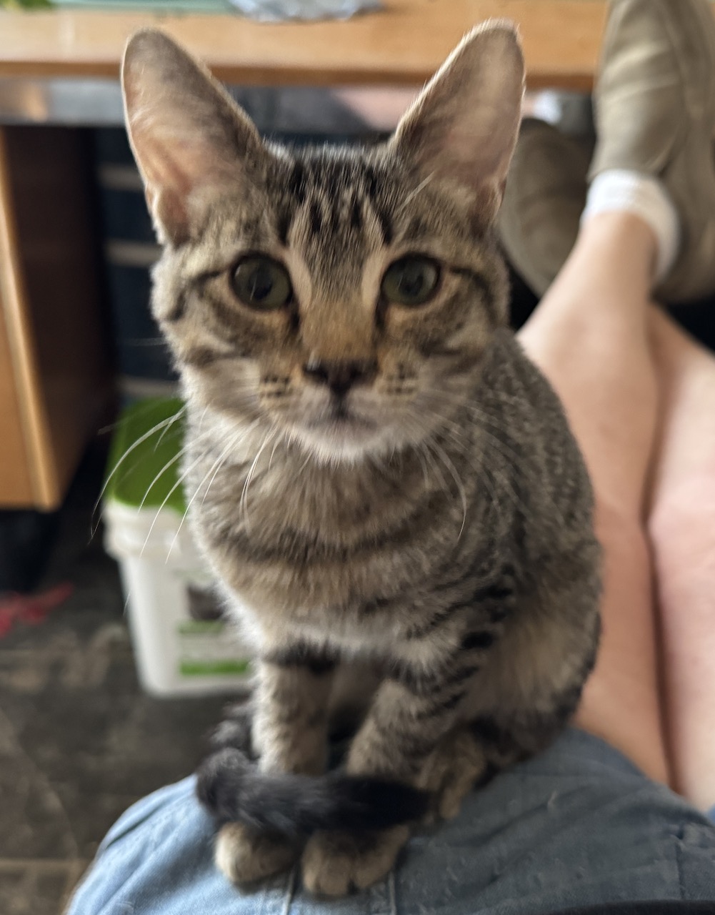 Anne BonnyLittle Ann we have discovered was abused by her previous owner. Kicked in the head, we think her jaw was dislocated or broken. Everything healed "off" and she can't eat on her right side and is in pain. We're working with the vet to find the right combo of meds to allow her to eat pain free. In the meantime, she is getting tiny bits of Thanksgiving ham.